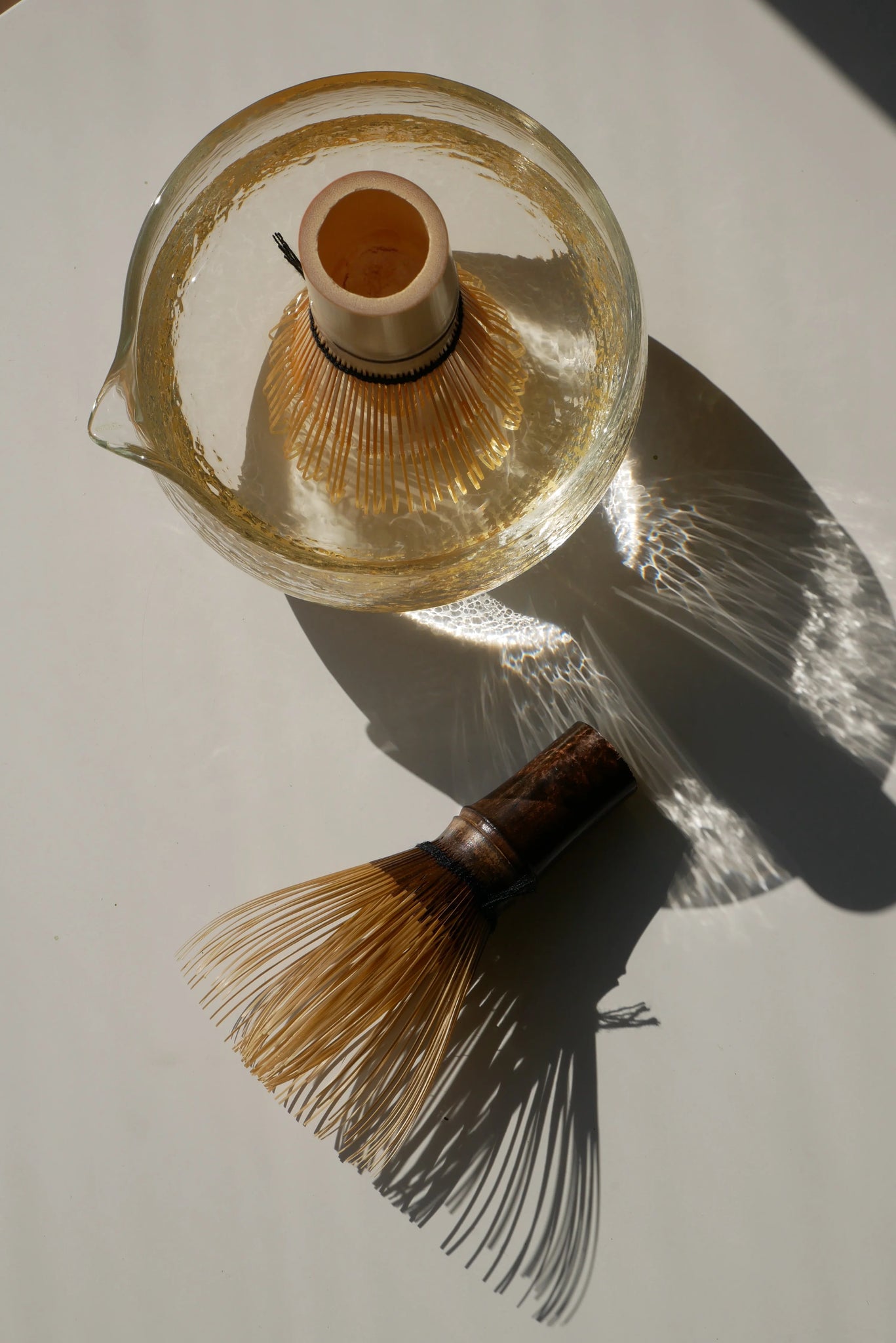 Mezclar el matcha es especialmente fácil gracias a su superficie lisa y luce precioso en el vidrio texturizado. Con la ayuda del pico vertedor, puedes verter el matcha en tu taza o chawan sin derramarlo. Por supuesto, también puedes disfrutarlo directamente del bol.